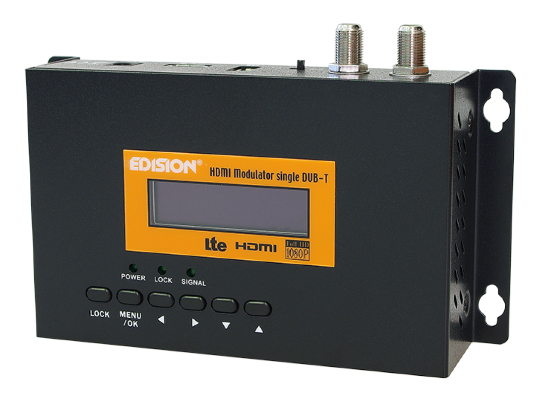 Περιγραφή EDISION HDMI MODULATOR single DVB-TΨηφιακός μονοκάναλος FULL HIGH DEFINITION διαμορφωτής σήματος HDMI. Aπο οποιαδήποτε πηγή Audio/Video με HDMI έξοδο (δέκτες δορυφορικού & επίγειου ψηφιακού τηλεοπτικού σήματος, κάμερες, DVD, DVR και κάθε άλλη πηγή σήματος HDMI) παράγει Επίγειο Ψηφιακό σήμα FULL HIGH DEFINITION 1080p, με επιλογή εξόδου σε κανάλι VHF ή UHF. Παρέχει εξαιρετική απόδοση και ποιότητα σήματος στην έξοδο, έχει ALL-BAND είσοδο RF-LOOP και ενσωματωμένο επιλεγόμενο φίλτρο 4G-LTE! Διαθέτει USB θύρα για αναβάθμιση λογισμικού και CONFIG DATA. |